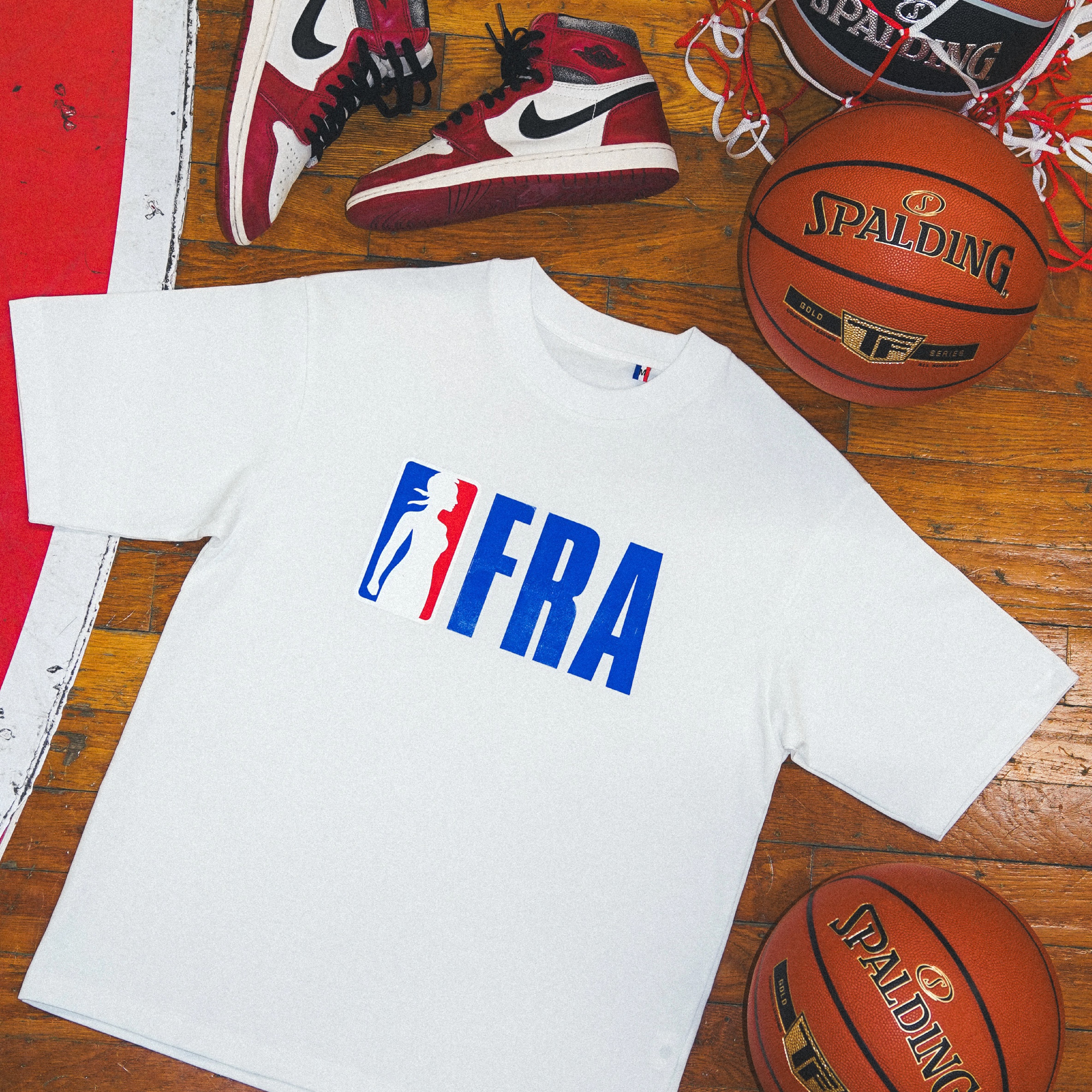 Un t-shirt sérigraphié avec un visuel inspiré de la ligue de basketball américaine NBA.