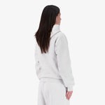 La mannequin mesure 1m70, elle porte le hoodie en taille M.